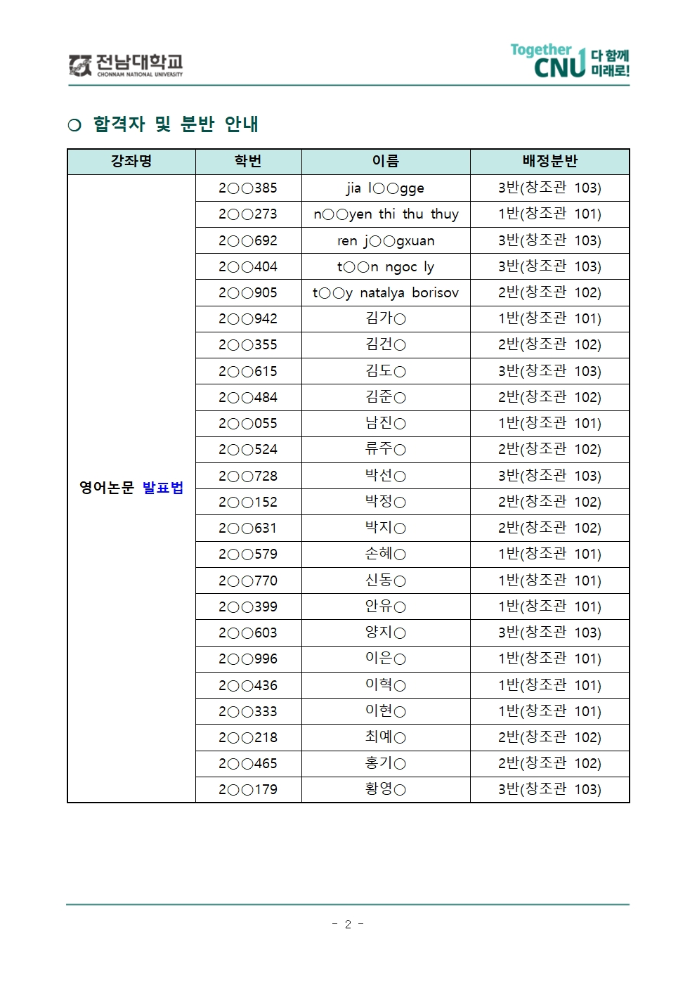 게시판 언어교육원 소개 외국어강좌 한국어강좌 특별강좌 강좌접수 게시판 영어학습센터 공지사항 공지사항 강좌소식 Q & A 특강제안하기 채용공지 영문교정 게시판 공유하기 복사 공지사항 2025학년도 동계 대학원생 영어논문 작성/발표법 특강 합격자 및 개강 안내 작성자 관리자2(lec) 작성일 2025-12-30 조회 359 첨부파일 #1 합격자 발표 및 개강안내문.pdf[ 다운로드 : 66 ] 117KB첨부파일 #2 합격자 발표 및 개강안내문001.jpg[ 다운로드 : 30 ] 604KB첨부파일 #3 합격자 발표 및 개강안내문002.jpg[ 다운로드 : 17 ] 466KB첨부파일 #4 합격자 발표 및 개강안내문003.jpg[ 다운로드 : 25 ] 305KB첨부파일 #5 합격자 발표 및 개강안내문004.jpg[ 다운로드 : 28 ] 498KB . 목록