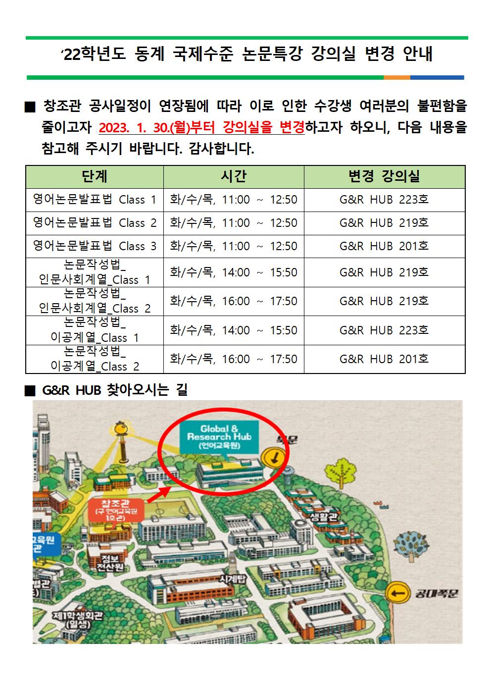 게시판 언어교육원 소개 외국어강좌 한국어강좌 특별강좌 강좌접수 게시판 영어학습센터 공지사항 공지사항 강좌소식 Q & A 특강제안하기 채용공지 영문교정 게시판 공유하기 복사 공지사항 2022학년도 동계 국제수준 논문작성법/발표법특강 강의실 변경 안내 작성자 관리자2(lec) 작성일 2023-01-26 조회 965 첨부파일 #1 강의실 변경('23.1.30.~) 안내문001.jpg[ 다운로드 : 206 ] 228KB . 목록